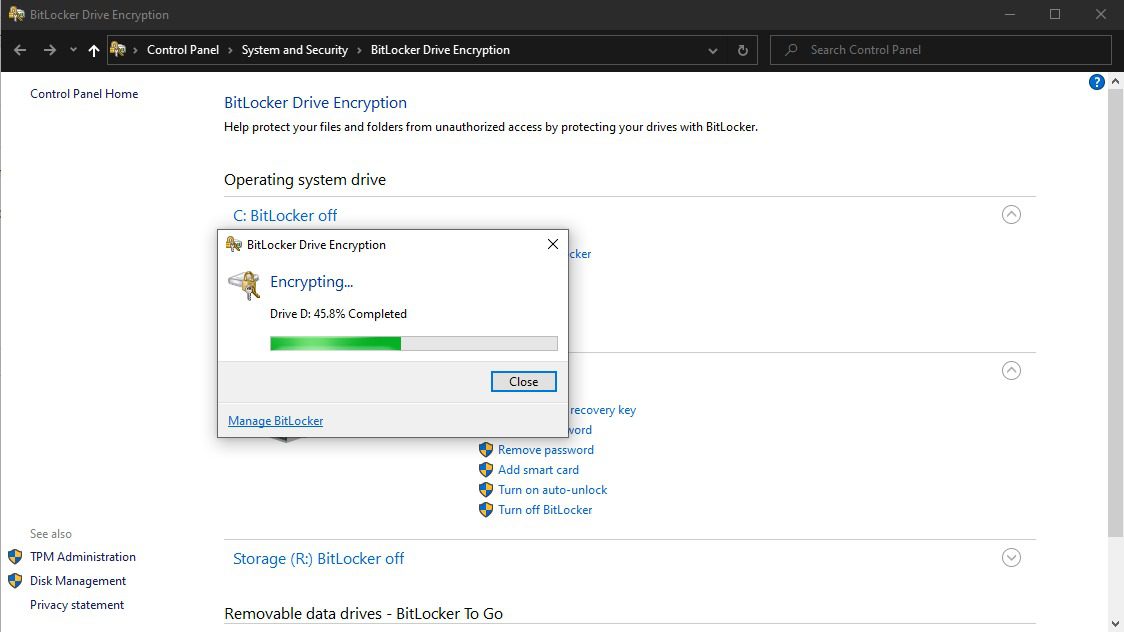 Trusted Platform Module (TPM) technology is designed to provide hardware-based, security-related functions when paired with Windows Bitlocker.