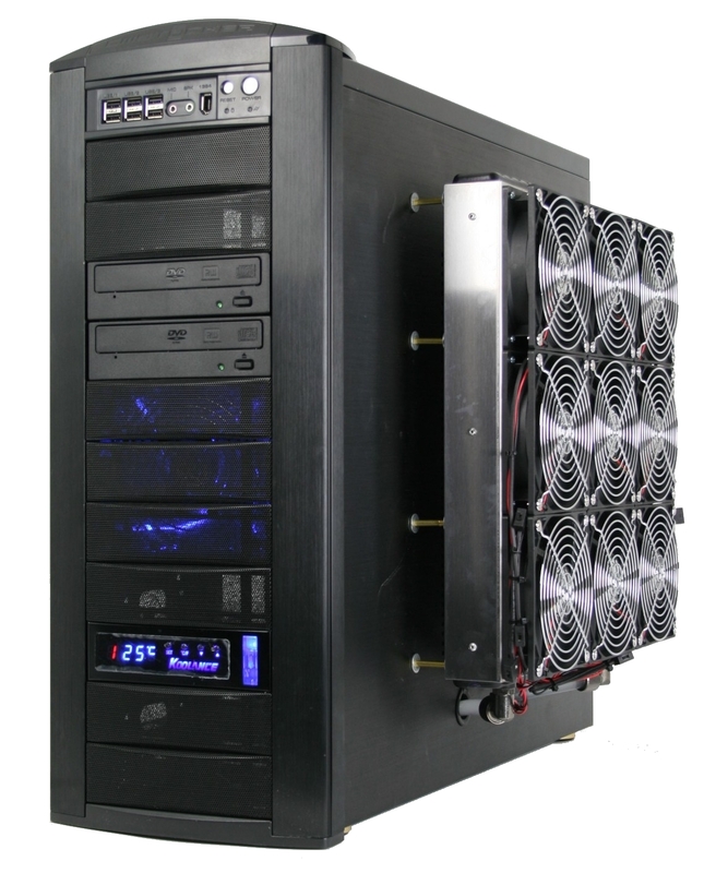 Back in September of 2008, one of our loyal clients contacted me about designing a new computer system. This was not an abnormal request and one I would receive on a daily basis. However, as we began to detail the functions and needs of the system to be designed (which included heavy number-crunching and fractal animation generation), it became apparent that this was not going to be an ordinary build. The customer already had an 8-core Xeon computer, with which he was currently using at 100% processing capacity on daily basis. Given the factor that the machine would be used 10+ hours a day as a workstation (plus however many more as a leisure machine in the evenings), we needed to design it to run very cool and very quiet. Not an easy task!!