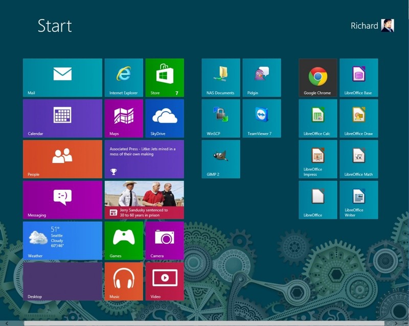 The tiles are large, to facilitate easy interaction with large fingers even on small screens, but on a large desktop monitor it looks decidedly out of place. If you right-click on a tile to remove it, change it, etc then the menu that results opens at the very bottom of the screen – where it would be easy to move a finger to, but it feels odd to have to move a mouse cursor so far between related commands.