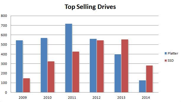 I went back to 2009 to determine our best selling SSDs by each year.