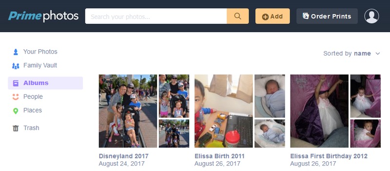 Amazon Prime Photos: I’m already an Amazon Prime member and find great value in it with its 2 day shipping and Prime video. Turns out that another benefit you get with Amazon Prime is unlimited photo storage. Unlike Google Photos, it gives you unlimited storage at full photo resolution. You can also invite up to 5 people to join your “Family Vault” and they can store unlimited photos as well for free. Finally, you can order prints directly from the website at a cost that is cheaper than what we have been paying at Costco Prints. The one downside is video files count toward your 5GB of free space. You can get 100GB for $12 a year.