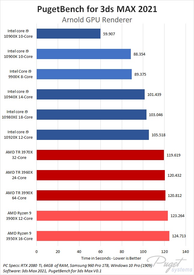 Often when we approach a new test, we are able to make some safe assumptions. For example, when testing the Arnold CPU Renderer, we can assume that more cores will result in a faster render. When testing GPU rendering, it's safe to assume that a 2080 Ti will outperform a 2070. Even though we can make these educated guesses, we still perform the tests because we want to see exactly how much of a difference exists, and if the price difference justifies the purchase. However, sometimes those assumptions are proven wrong.