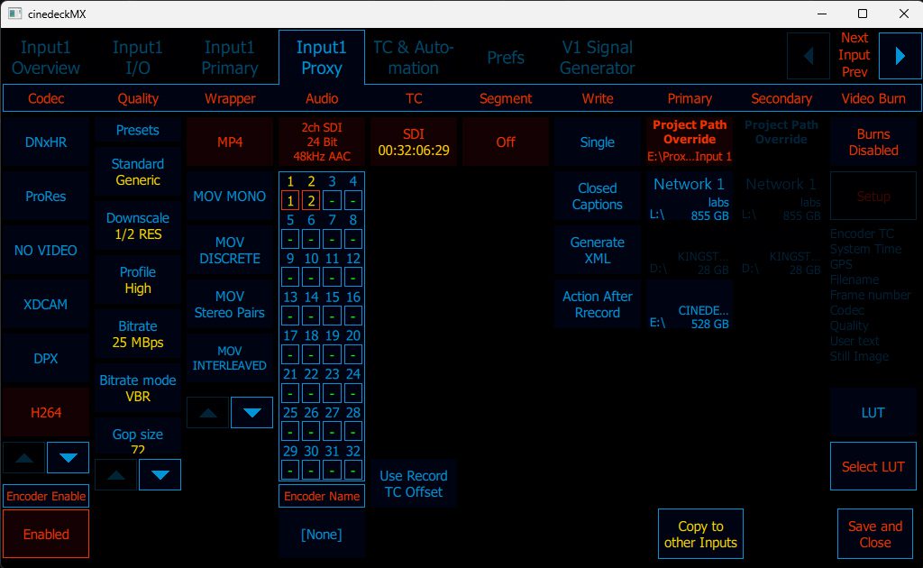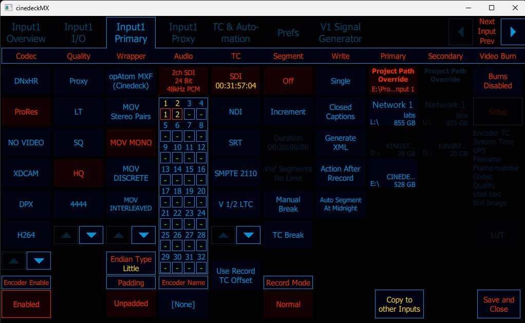 Our initial test confirmed that Cinedeck could record four simultaneous UHD YUV 10-bit ProRes 422 HQ files and four HD proxy files without issues. However, we encountered a warning about an input buffer from the disk cache. To mitigate the risk of bottlenecks when encoding to cache, we recommend utilizing a PCIe Gen 4 NVMe drive with faster read/write speeds, such as the Kingston Fury Renegade.