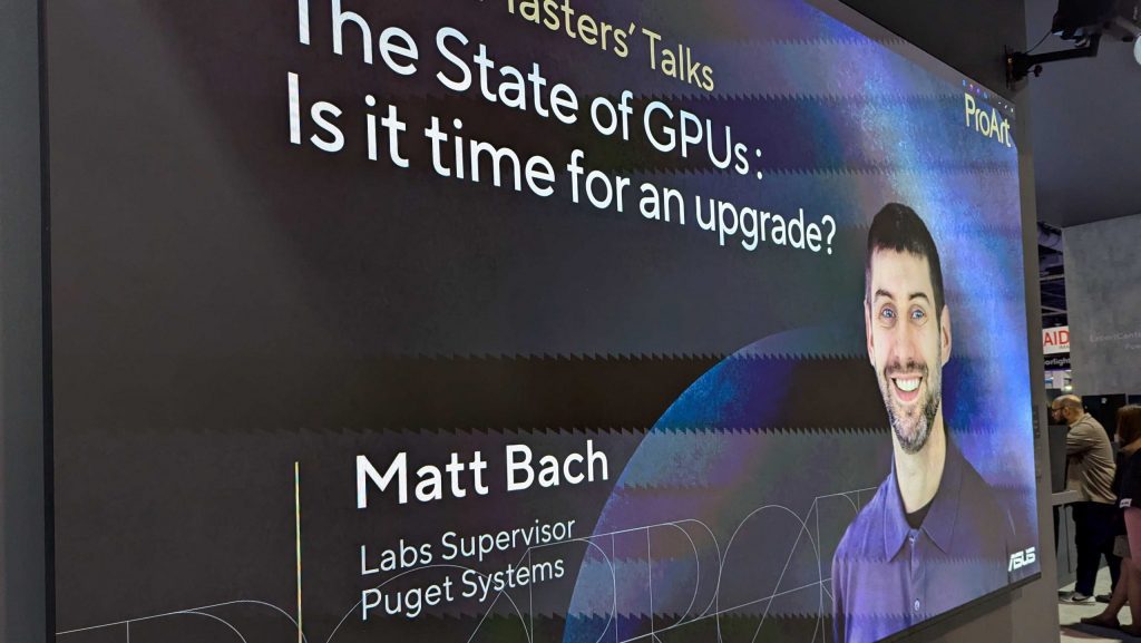 Matt Bach gave a presentation as part of ASUS’ ProArt Masters’ Talk series. Matt talked about the state of the computer hardware industry and how to decide when it is time to upgrade. While we unfortunately don’t have a recording of the presentation, subscribe to our hardware articles to stay up-to-date on our most recent testing with NVIDIA’s new GPUs. As those articles come out over the coming weeks, you’ll be able to use that performance testing to help make the decision for yourself as well!