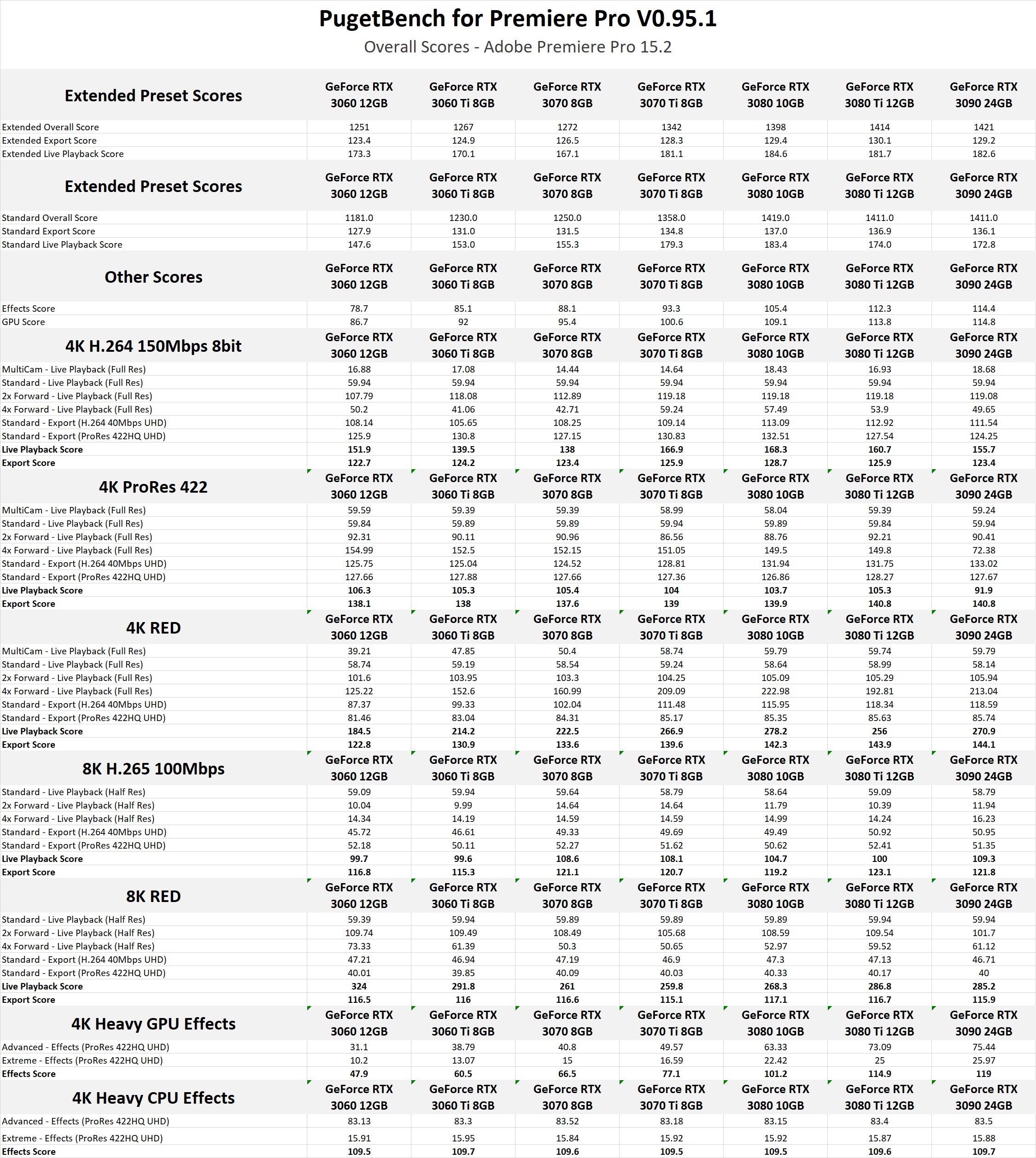 TL;DR: NVIDIA GeForce RTX 3070 Ti 8GB & RTX 3080 Ti 12GB performance in Premiere Pro