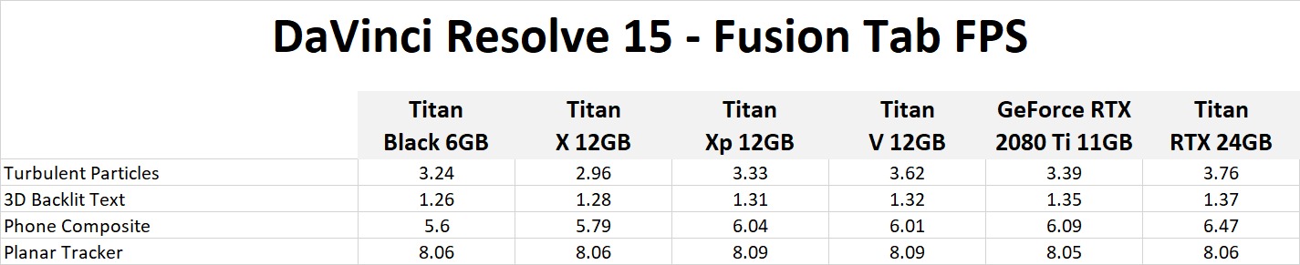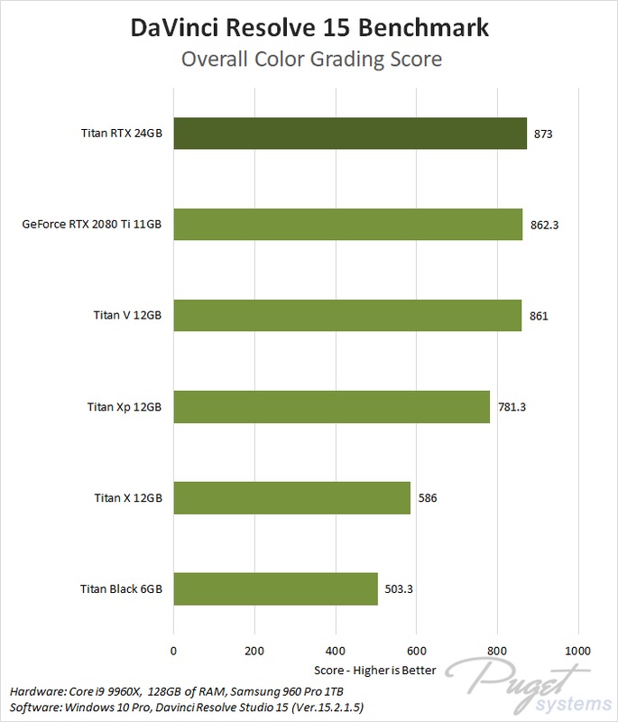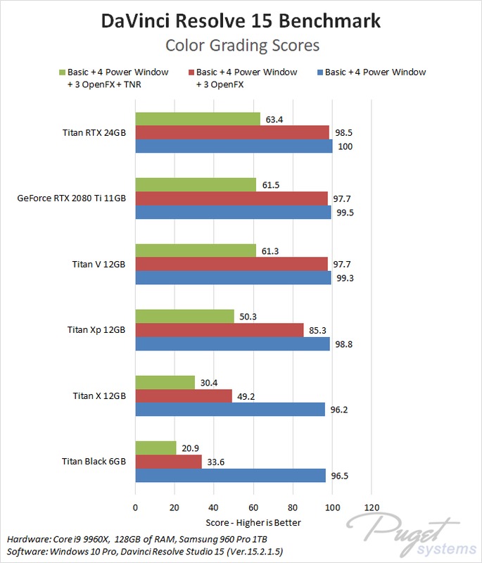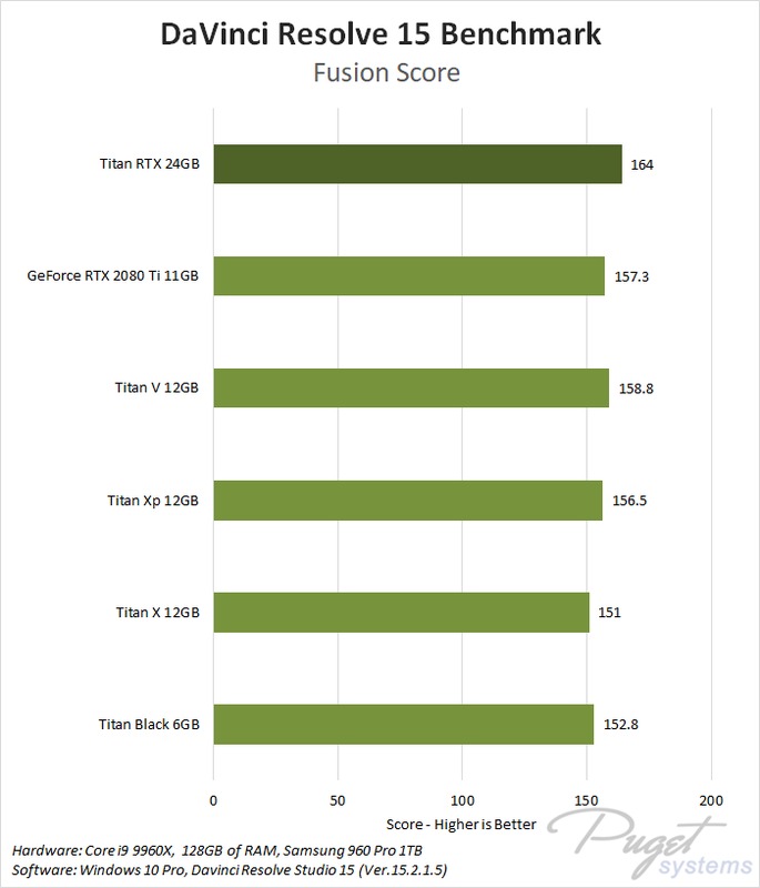 To see how the new Titan RTX card performs in DaVinci Resolve, we tested it against a selection of high-end cards from NVIDIA going all the way back to the Titan Black.