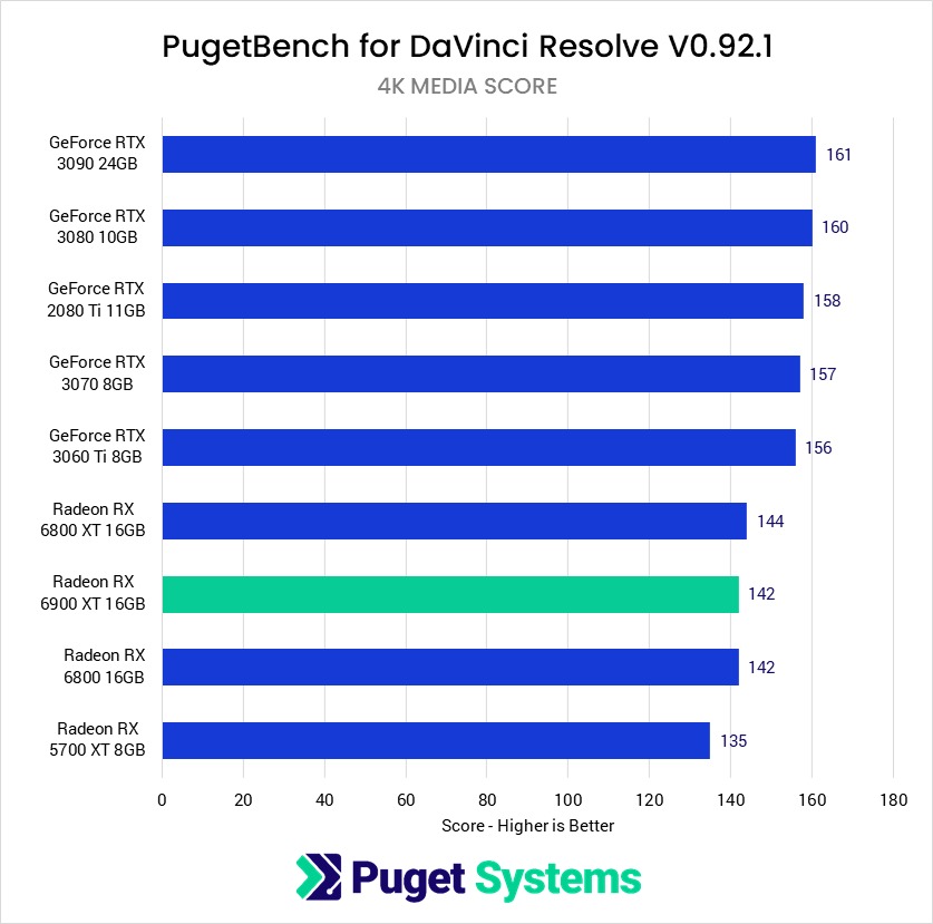 While gaming is almost always a major focus during these GPU launches, professional applications like DaVinci Resolve are becoming more and more important. In fact, if you view the product page for the 6900 XT, you will note that they are starting to include Content Creation performance from benchmarks like our very own "PugetBench for Premiere Pro".