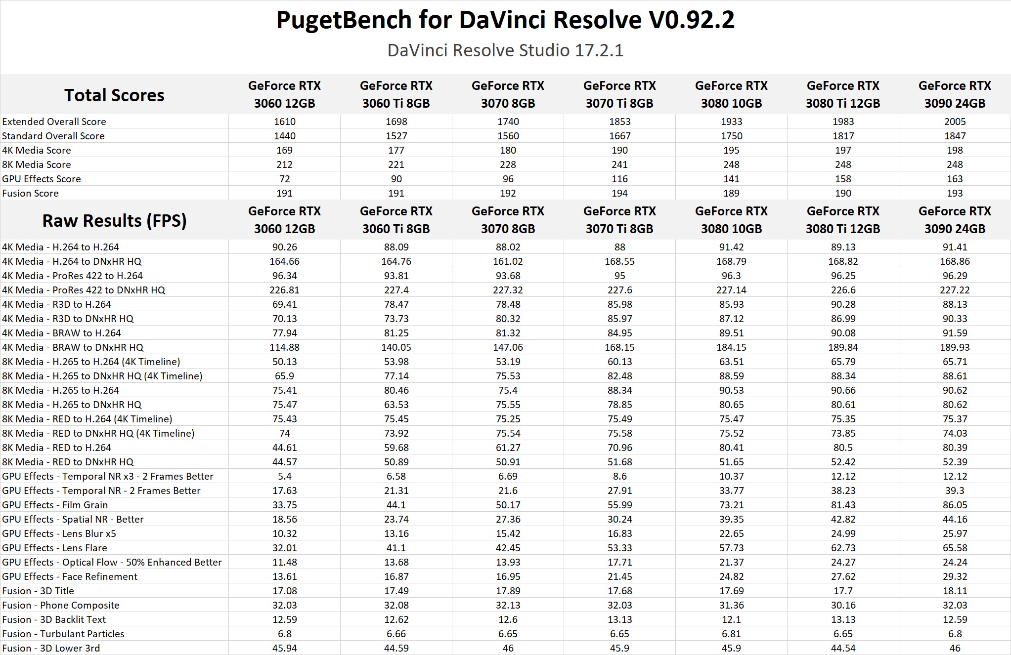 TL;DR: NVIDIA GeForce RTX 3707 Ti 8GB & 3080 Ti 12GB performance in DaVinci Resolve Studio