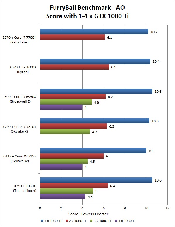 Here are the scores for each section of the FurryBall RT benchmark. Ambient Occlusion (AO) is up first: