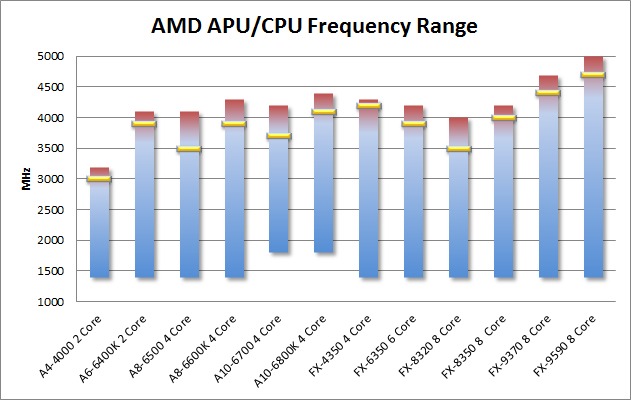 For roughly 13 years now, CPU have been able to vary their frequency using a number of different technologies. The first use of this concept was in January of 2000 when Intel introduced SpeedStep which lowered the frequency of the processor when it was at an idle or low load state. A bit more recently, both Intel and AMD have introduced what basically amounts to automatic, on-demand overclocking. Intel's Turbo Boost (introduced in March of 2009) and AMD's Turbo Core (introduced in April of 2010) use similar, although very different, methods to allow the CPU to run beyond it's base frequency to provide a boost in performance when it is needed.