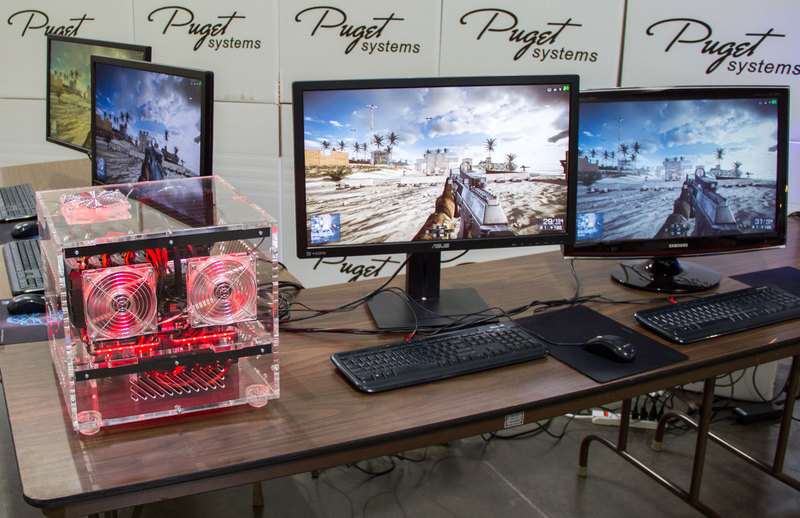 We recently published the article Multi-headed VMWare Gaming Setup where we used VMWare ESXI to run four virtual gaming machines from a single PC. Each virtual machine had its own dedicated GPU and USB controller so there was absolutely no input or display lag while gaming. The setup worked great and the article was very popular, but one limitation we found was that NVIDIA GeForce cards cannot be used as passthough devices in VMWare ESXI. We received feedback from some readers that GeForce cards should work in Linux with KVM (Kernel-based Virtual Machine) so we set out to make a GeForce-based multiheaded gaming PC using Ubuntu 14.04 and KVM.