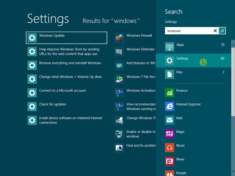 To search for an application, simply start typing your search string from the Metro interface. By default, it will show the applications that fit that search term, but you can also switch the method to search for either settings or files by clicking on the appropriate icon below the search field. Alternatively, you can use the following hotkeys before you begin typing your search string to search designate a search for either applications, settings or files.