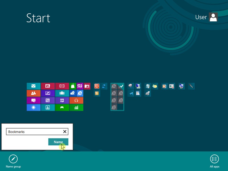 On the tile group overview screen, you can click and drag whole groups of tiles just like individual tiles on the Metro Start page if you want to move whole groups at a time. To assign a name to the group of tiles, simply right-click on the group and click the "Name group" button that comes up.