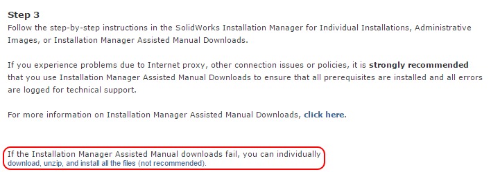 After accepting the Solidworks EULA, you will be given the choice to either download the Solidworks Installation Manager or download files individually. While you can install the PhotoView 360 Client with the installation manager, we recommend clicking on the link to download the files individually as installing with this method will not require you to find your Solidworks product key.