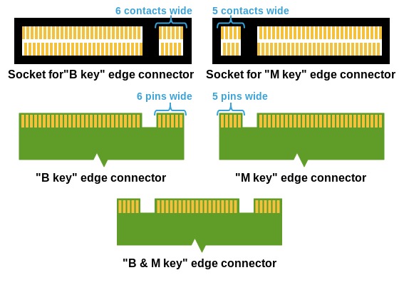 In addition, there are two types of sockets for M.2: one with a "B key" and one with a "M key".