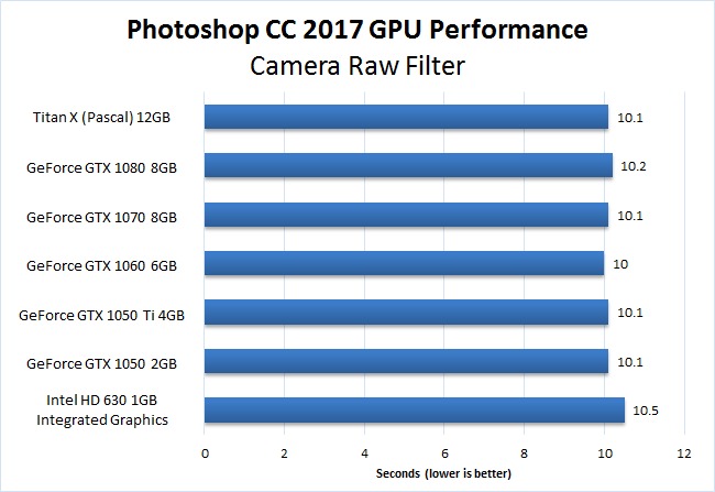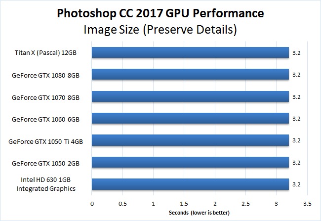 The one downside to these cards is that they do not support 10-bit displays which NVIDIA currently reserves for their Quadro line of cards. If you use a 10-bit display, we recommend checking out our Photoshop 2017 NVIDIA Quadro GPU Performance article to see how the various Quadro cards perform.