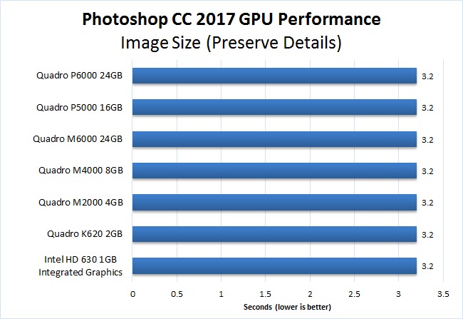This hardware is essentially what we use in our Photoshop Recommended System and should be an excellent platform for our testing. The Quadro cards we are testing are a mix of Maxwell and Pascal based cards, but with the exception of the M6000 they are all the latest cards available at each price point. The M6000 was replaced by the P6000, but we decided to include it as a way to compare the older Maxwell architecture to the newer Pascal architecture. The different video cards we will be testing are: