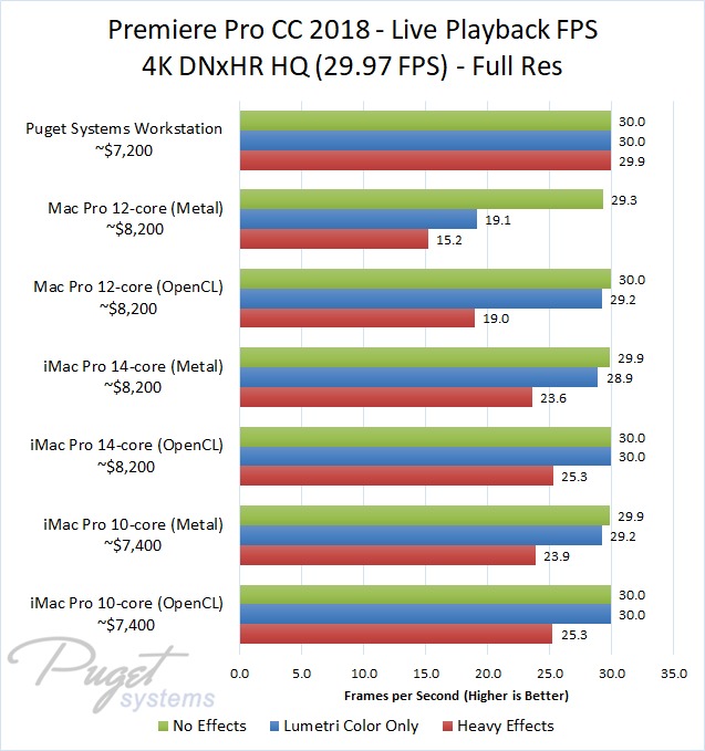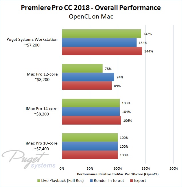 For this testing, we will be using two high-end iMac Pro systems and the old (but still current) Mac Pro alongside a similarly priced PC workstation looking at performance for live playback, render in to out, and export. Just as a warning, this article contains quite a few charts with over 1,000 different data points. If you don't like scrolling through this amount of data, we recommend skipping right to the Conclusion section.