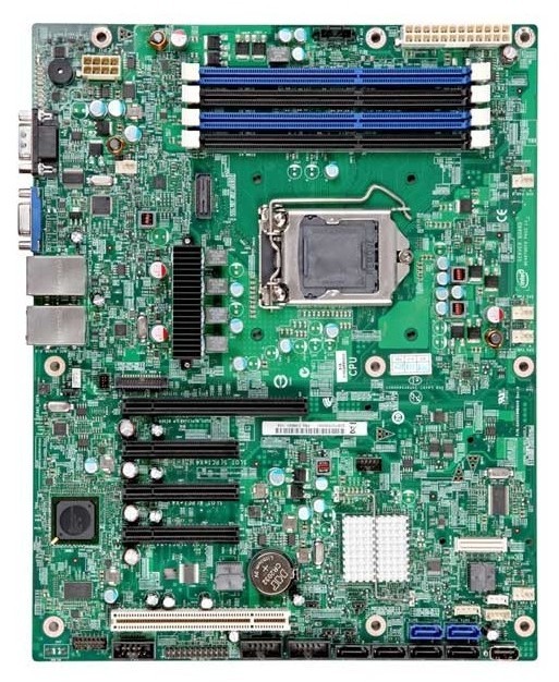 This motherboard utilizes the Intel E3 1200 series of Xeon processors and can be used for a wide variety of applications due to its large number of PCI-E slots. Specifically, this board has one PCI-E x16 slot, three PCI-E x8 (x4 throughput) slots, and one PCI slot. This large number of PCI-E slots allows for the combined use of many different devices including network cards and RAID controllers. For remote server management, this motherboard also supports the Intel AXXRMM4LITE Remote Management Module which allows for remote actions such as power on/off and remote iKVM functionality.