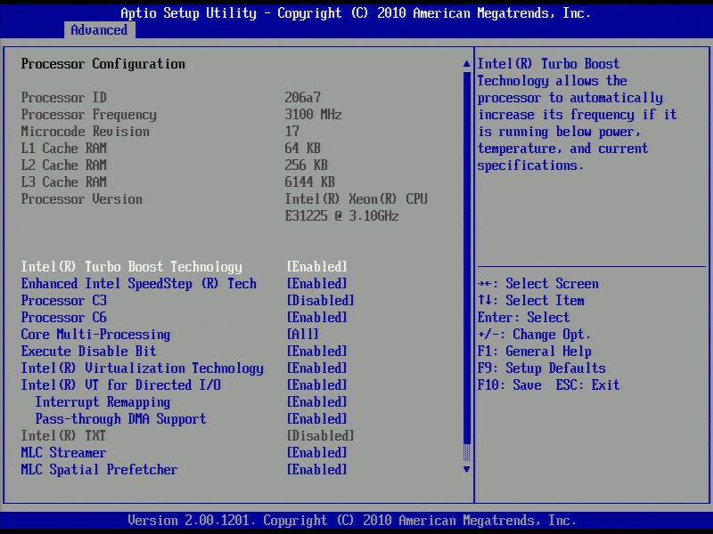 Like most server-class motherboards, the BIOS is very basic. There is no way to adjust the RAM or CPU frequency, timings or voltages; although you can turn on/off Turbo Boost, Speedstep and Virtualization Technology. The SATA ports have many configuration options including Compatibility, Enhanced, AHCI, and RAID modes. The fan headers do support throttling, although you can only adjust it according to elevation. We have never understood why you would want to adjust according to elevation rather than temperature, but that is the only option on this motherboard.
