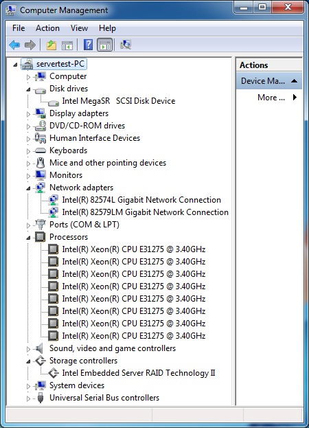 The Intel S1200BTS however has an actual LSI RAID controller built into the motherboard. The 6 internal SATA 3Gb/s ports can be switched in the BIOS between the normal Intel C202 controller and this LSI RAID controller. This controller does require a driver to be loaded during Windows setup, and since the DVD drive is also on that controller (since you cannot switch individual ports) this means that you have to load the driver from a USB key rather than the driver disk. This makes the Windows installation a bit more of a hassle since you need a second machine running in order to download the driver from Intel.com onto a USB key but we had no problems installing Windows once we had the driver loaded.