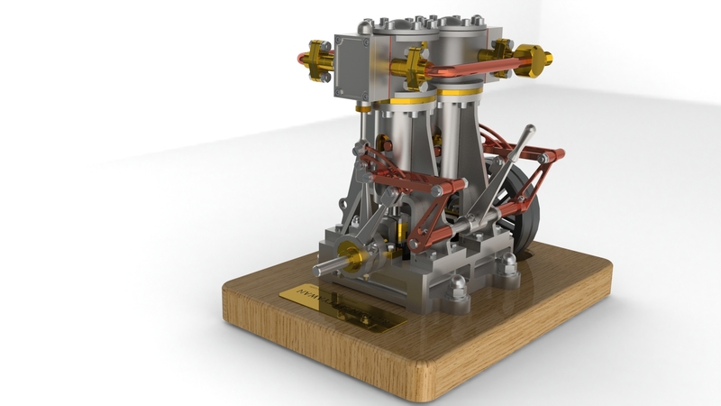| Rebuild/Rendering | Vertical Twin Steam Engine with Reverse Gear (by Ridwan Septyawan) |