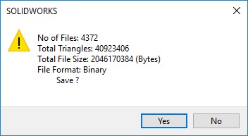 One note that I would like to make is that if you do not know how many triangles the models you work with have, the easiest method I know of to find out is to simply save the model as an .STL file. During the save process, a window pops up with information about the model including the number of files, the file size, and the number of triangles.