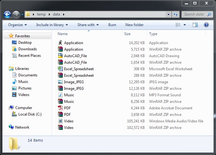 If you are unsure whether the data you are working with is compressible or incompressible, an easy way to find out is to send a sample of that data to a zip file and compare the size of the original data to the size of the zip file. If the file size does not change much, you have incompressible data. If the file size is much lower, then you have compressible data. As an example, here are some common data types both before and after being sent to a zip file: