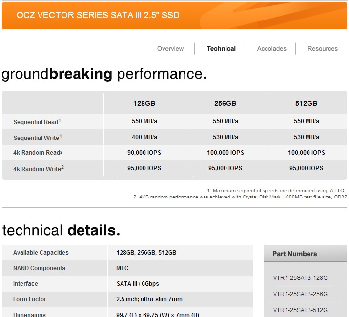 While we would love to see manufacturer specifications that include speeds for both compressible and incompressible data, the problem is that even if a manufacturer wanted to do so, it would likely only result in confusing for the majority of consumers. Also, most consumers simply equate bigger numbers to better performance so no manufacturer wants to advertise smaller performance numbers, even if they are more realistic. However, advertising only compressible data performance (without even a caveat about the type of data being used) often results in unhappy customers which is also something that no company wants. Some manufacturers (such as OCZ) do show how they benchmark their drives, but this information is usually incomplete or buried in whitepapers.