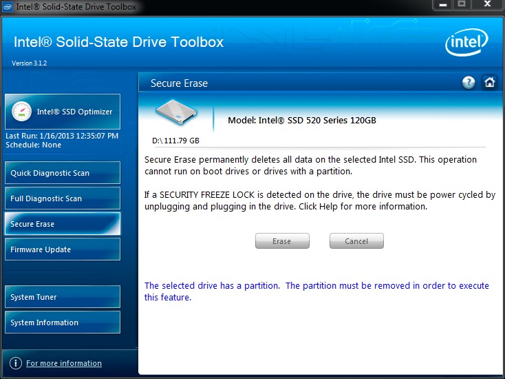 If you are at the point where your SSD's write performance is starting to degrade and you want to get it back to peak performance, the one surefire way to do so is to perform a secure erase on the drive which is available through the Intel SSD Toolbox. This wipes the drive so make sure you backup your data first! Simply remove the drive's partition, load the SSD Toolbox, click the Secure Erase button and follow the instructions. Think of this as a reset button that reverts the drive back to its original state.