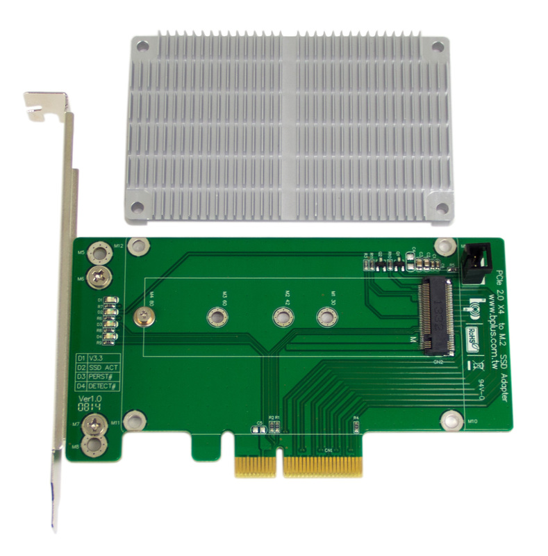 | M.2 to PCI-E adapter | Bplus M.2 to PCI-E x4 SSD adapter w/ heatsink |