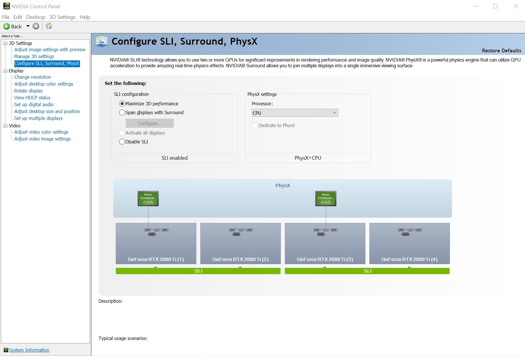 - Open NVIDIA Control Panel and check what the default SLI configuration was after driver installation