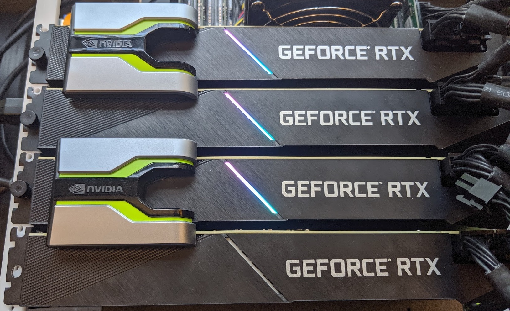 In light of that experience, I've taken time in the last couple of weeks to go through and test several different NVIDIA drivers on two configurations: four GeForce RTX 2080 Ti cards as well as four Quadro RTX 6000s, both set up in two physically bridged pairs. In this article I will chronicle what I found worked, what didn't work or behaved oddly, and where we are at with this as a company as a result.