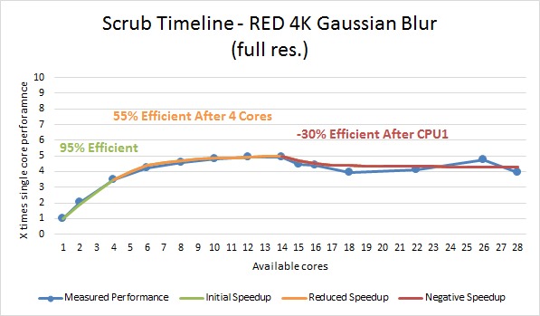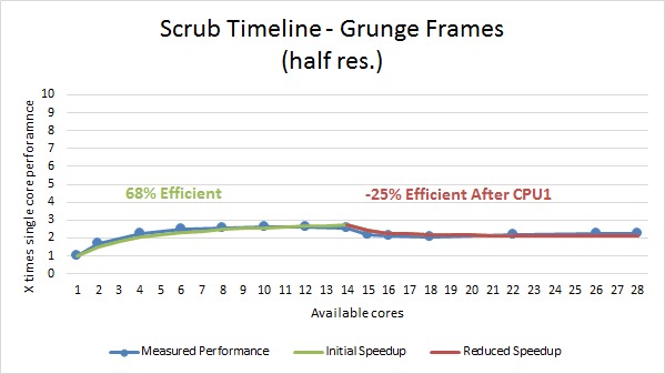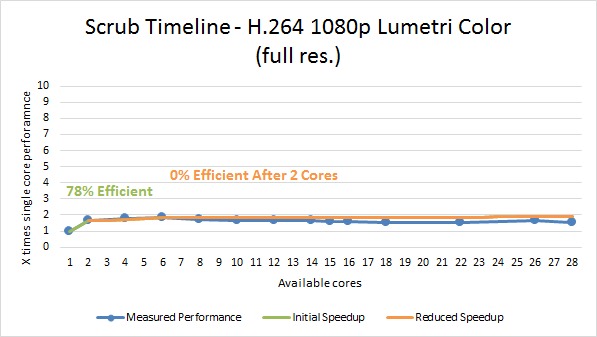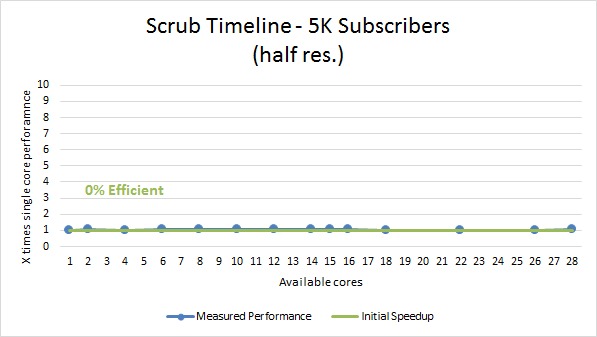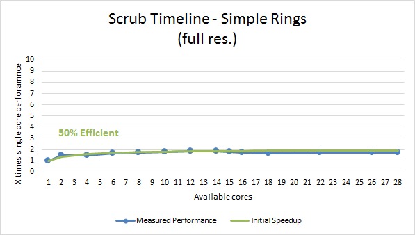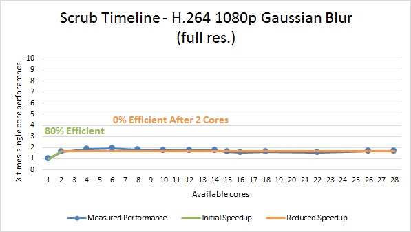 Scrubbing the timeline ended up being very similar to rendering, only with a slightly better multi core efficiency.