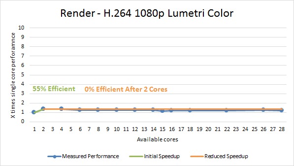 H.264 1080p – Lumetri Color 55% (0% after 2 cores) 78% (0% after 2 cores)