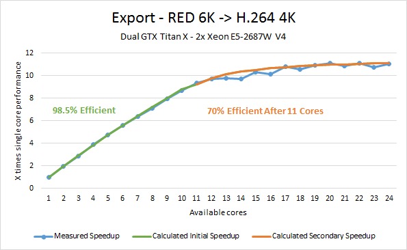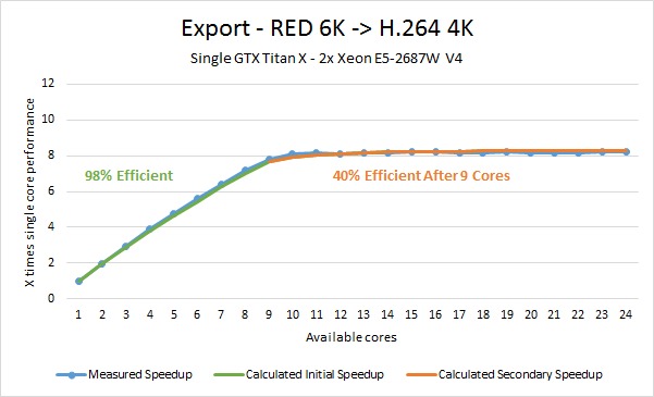 | RED 4K | 97% (70% after 12 cores) | 97% (50% after 12 cores) |