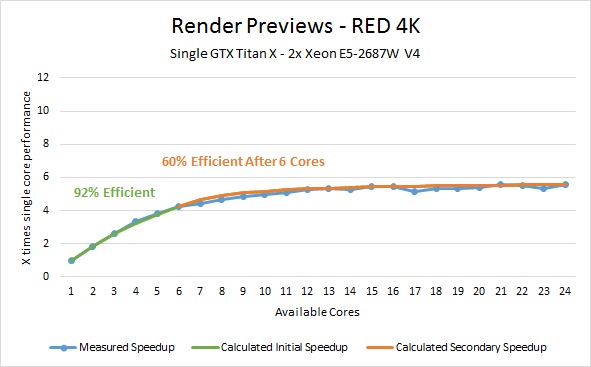 | RED 4K | 92% (60% after 6 cores) | 92% (65% after 6 cores) |