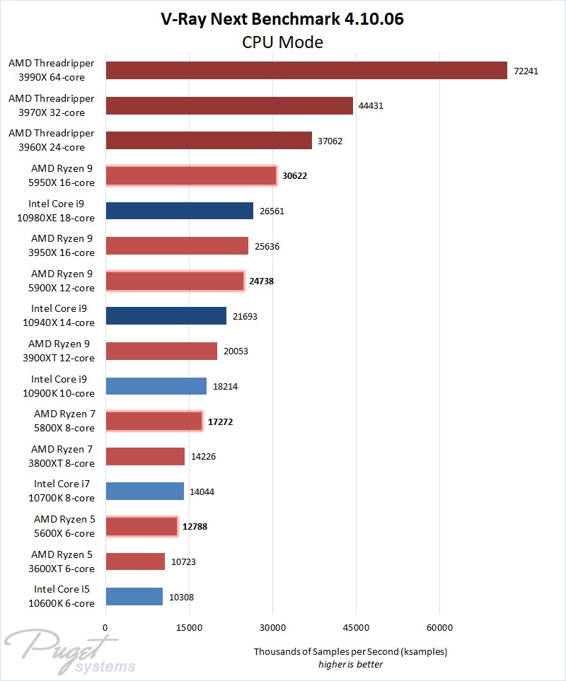 Summary: For the price, these new Ryzen processors offer great rendering performance – while also providing the best single-threaded speeds for modeling, animation, and other related tasks. Each model in the 5000 Series family is 10-20% faster in V-Ray Next than the corresponding model from the 3000 Series.