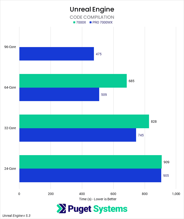 Beyond build servers, most artists workstations will likely not see the benefit of the higher csot Threadripper PRO line. For these users, going with the non-Pro and just knowing that occasionally you’ll need to take an extra coffee break while you wait another couple minutes will be well worth the savings. With updates to on-demand shader compilation, network shader caching, and more, Epic continues to make shaders sting just a little bit less.