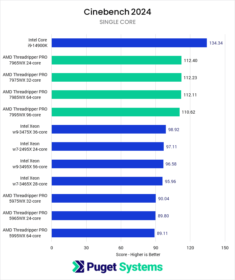 Still, even without much in the way of multi-core scaling, the new Threadripper PRO 7000 WX-Series is around 20% faster than a comparable Intel Xeon W-3400 processor.
