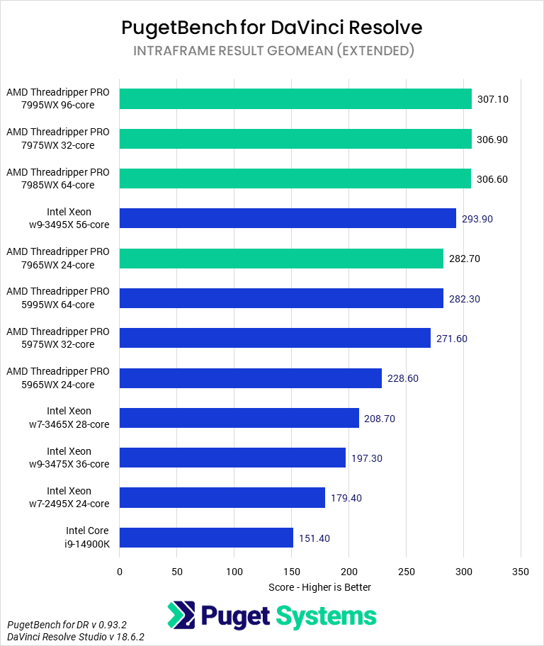 Full performance analysis: DaVinci Resolve: AMD Threadripper PRO 7000 WX-Series vs Intel Xeon W-3400