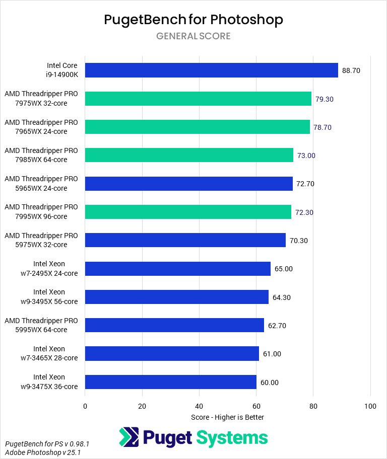 Full performance analysis: Adobe Photoshop: AMD Threadripper PRO 7000 WX-Series vs Intel Xeon W-3400