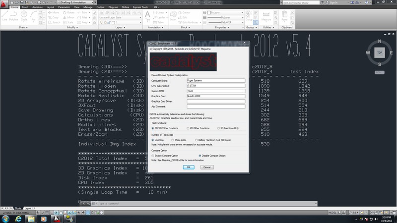 In this article, we want to explore the performance differences between a wide range of different video cards, including the current generation AMD Radeon and NVIDIA GeForce cards that are not on the certified list. In order to do so, we will be using the Cadalyst 2012 v5.4 benchmark on AutoCAD 2013. This benchmark is a full system benchmark that tests 3D and 2D graphic performance as well as disk and CPU performance. For the purpose of this article, we will largely be focusing on the 3D and 2D results, but will also use the "Total Index" or overall score. More information on the benchmark and the individual tests can be found here.