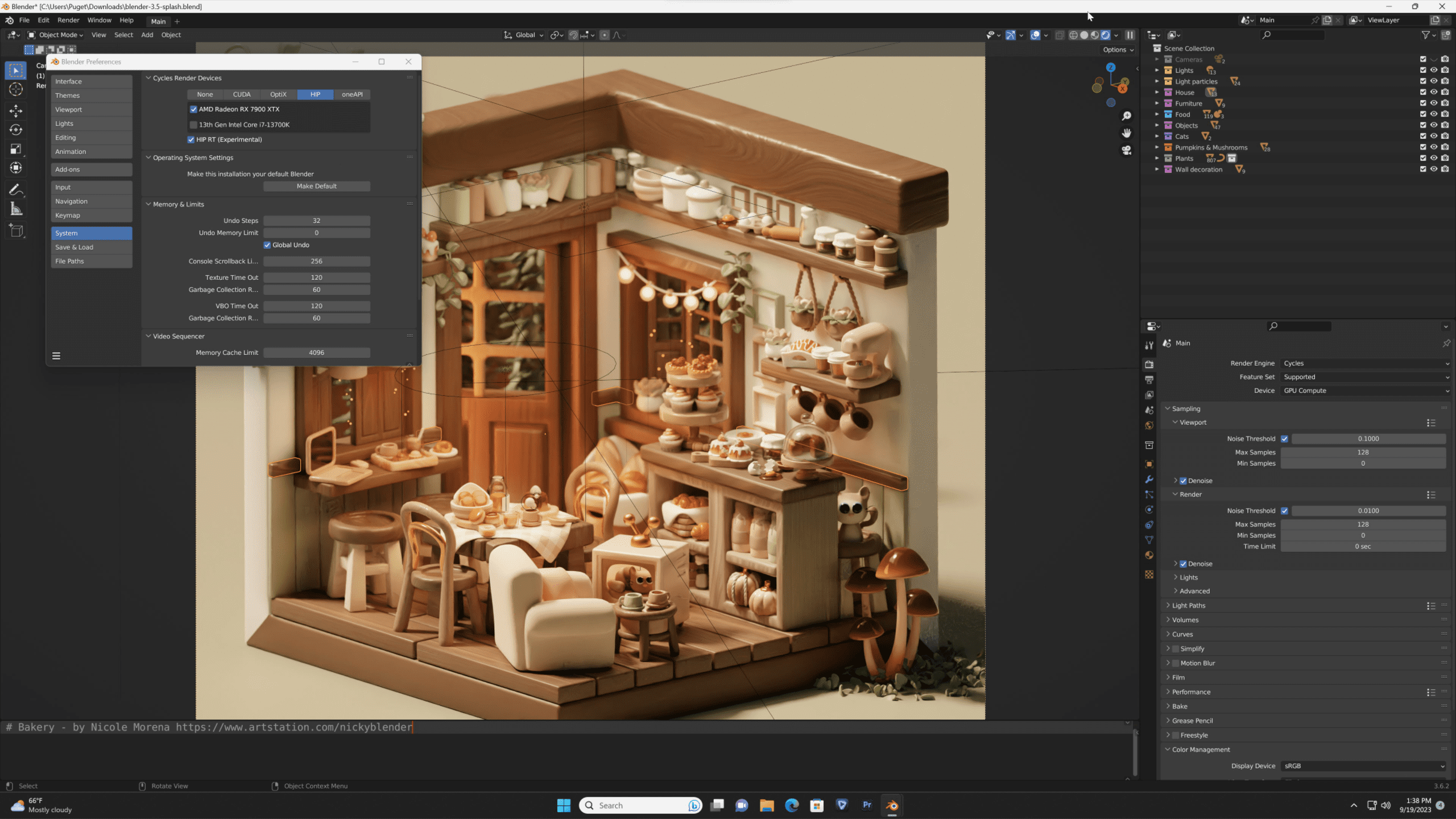 To test this update, we rendered four of Blender’s sample scenes (Monster, Junkshop, Classroom, and Cozy Kitchen) to see how they compare with HIP-RT on vs. off. In each, we rendered at default settings, at 200% resolution. As the chart above shows, there was anywhere between a 1.1-1.3x decrease in render times on the AMD Radeon 7900 XTX just by enabling this feature. Every project has different amounts of need for ray tracing, so results on your specific project will vary. Blender’s Junkshop sample project shows the highest performance improvement, dropping render times from 66.72 seconds to 50.74 seconds. On the lower end. The Cozy Kitchen project used as the splash screen for 3.5 improved render times from 97.89 seconds per frame to 88.23. Either way, Blender users with AMD video cards will benefit from faster render times.