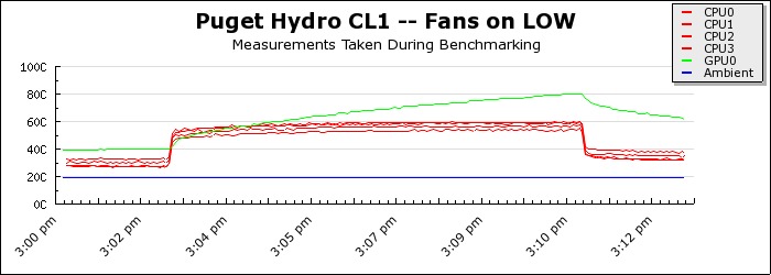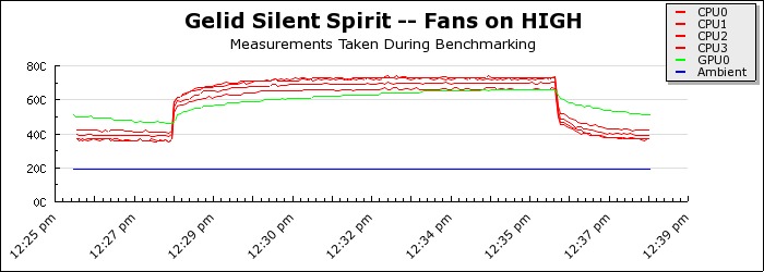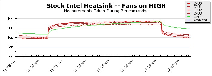The ambient temperature was climate controlled, always within one degree of 19 degrees Celsius. After installing the cooler, the system was allowed to warm up before our temperature logging was started. To put the system under as much load as possible, we ran Prime 95 Torture Test, along with FurMark 1.6.5. After the stress test was complete, the system was given two minutes to cool down before the temperature logging was stopped.