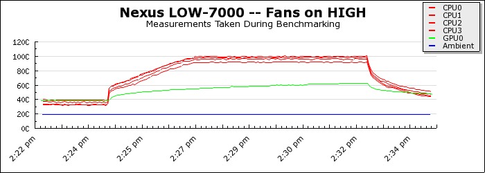| Note: the Nexus temperatures top off at 100C because that’s the point at which the CPU throttles its speed. Not good! | |