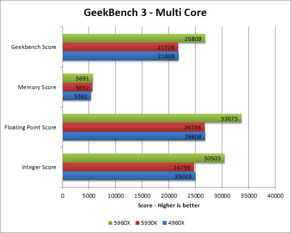 Haswell-E 5960X 5930K 4960X benchmark - Geekbench 3 multi core
