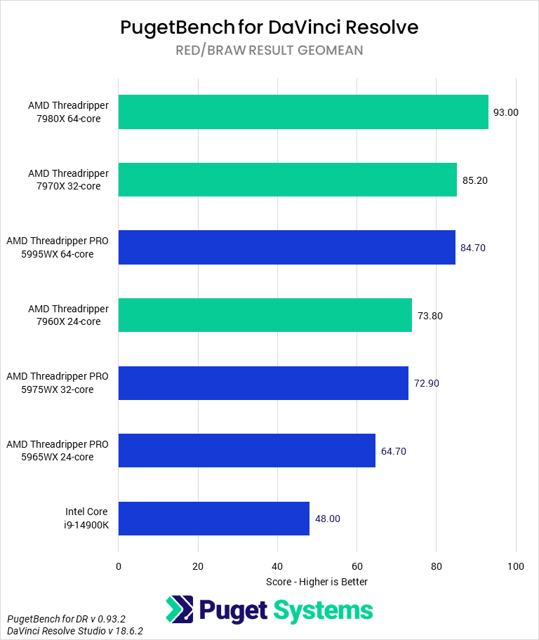 Threadripper 7000 versus Threadripper PRO 5000 WX-Series for DaVinci Resolve - Overall Score