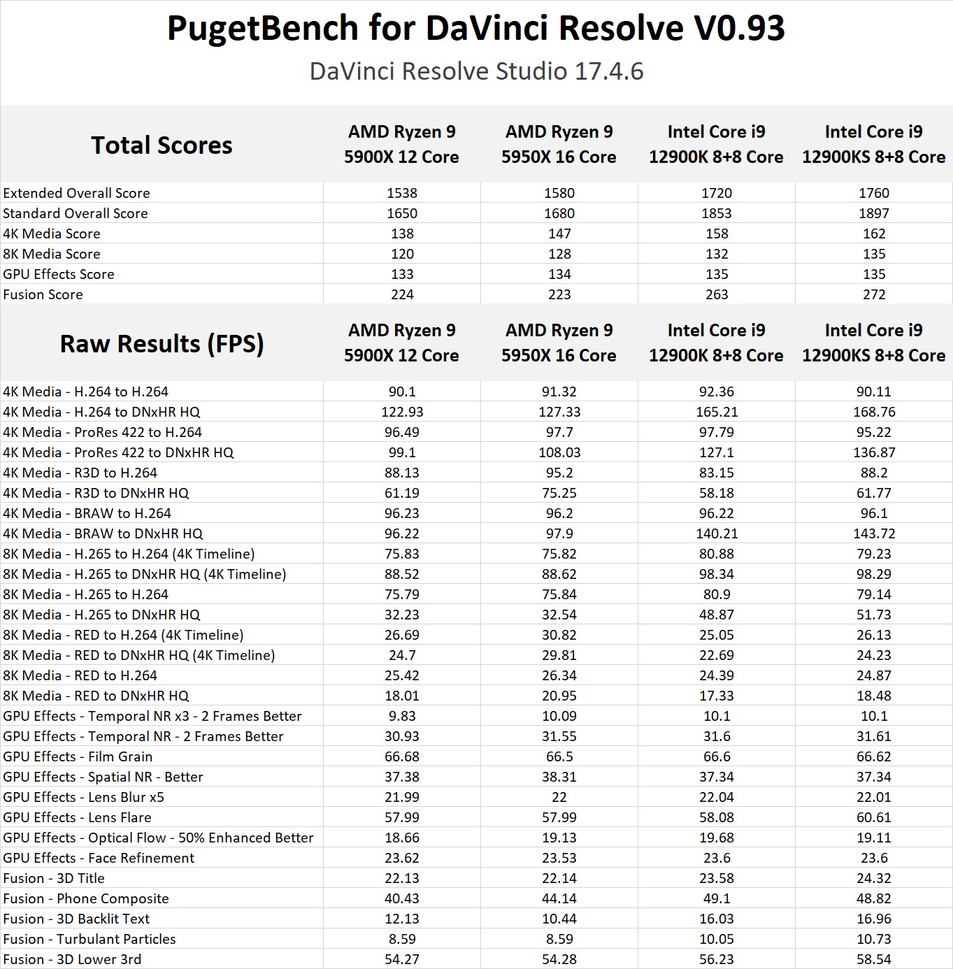TL;DR: Intel Core i9 12900KS performance in DaVinci Resolve Studio