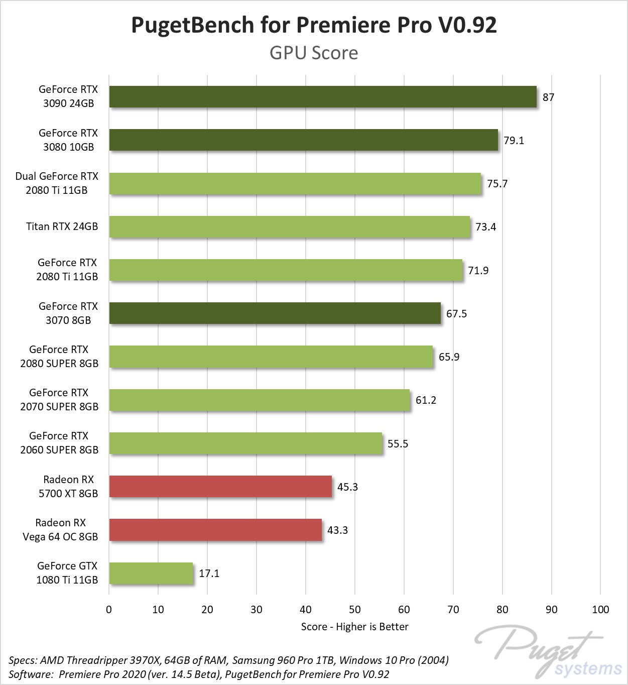 Read the full article: Adobe Premiere Pro – NVIDIA GeForce RTX 3070, 3080 & 3090 Performance